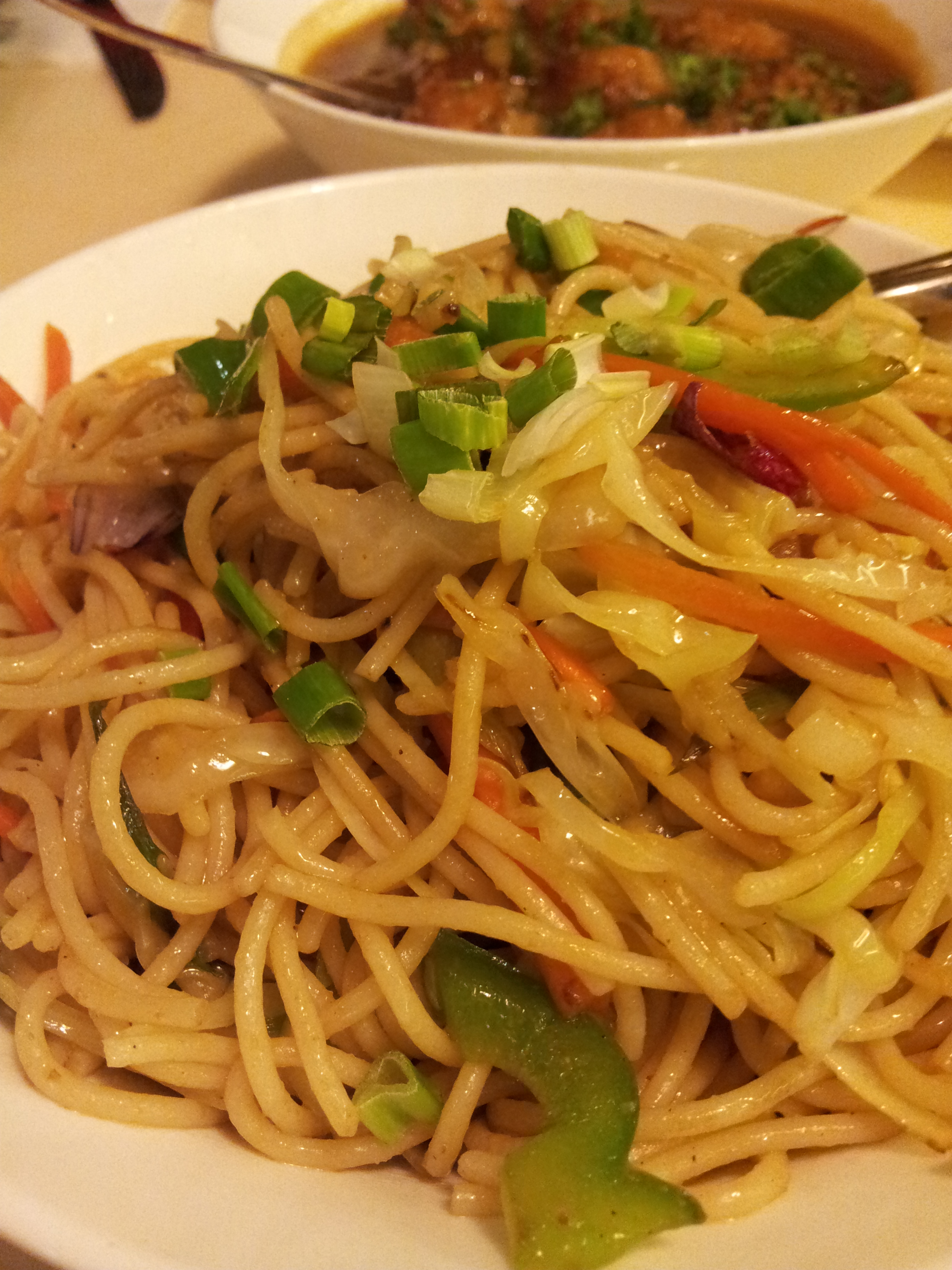 First time around we ordered the safe options in Chinese. We opted for Vegetarian Sweet Corn Soup, Manchurian with Gravy and Hakka Noodles.
