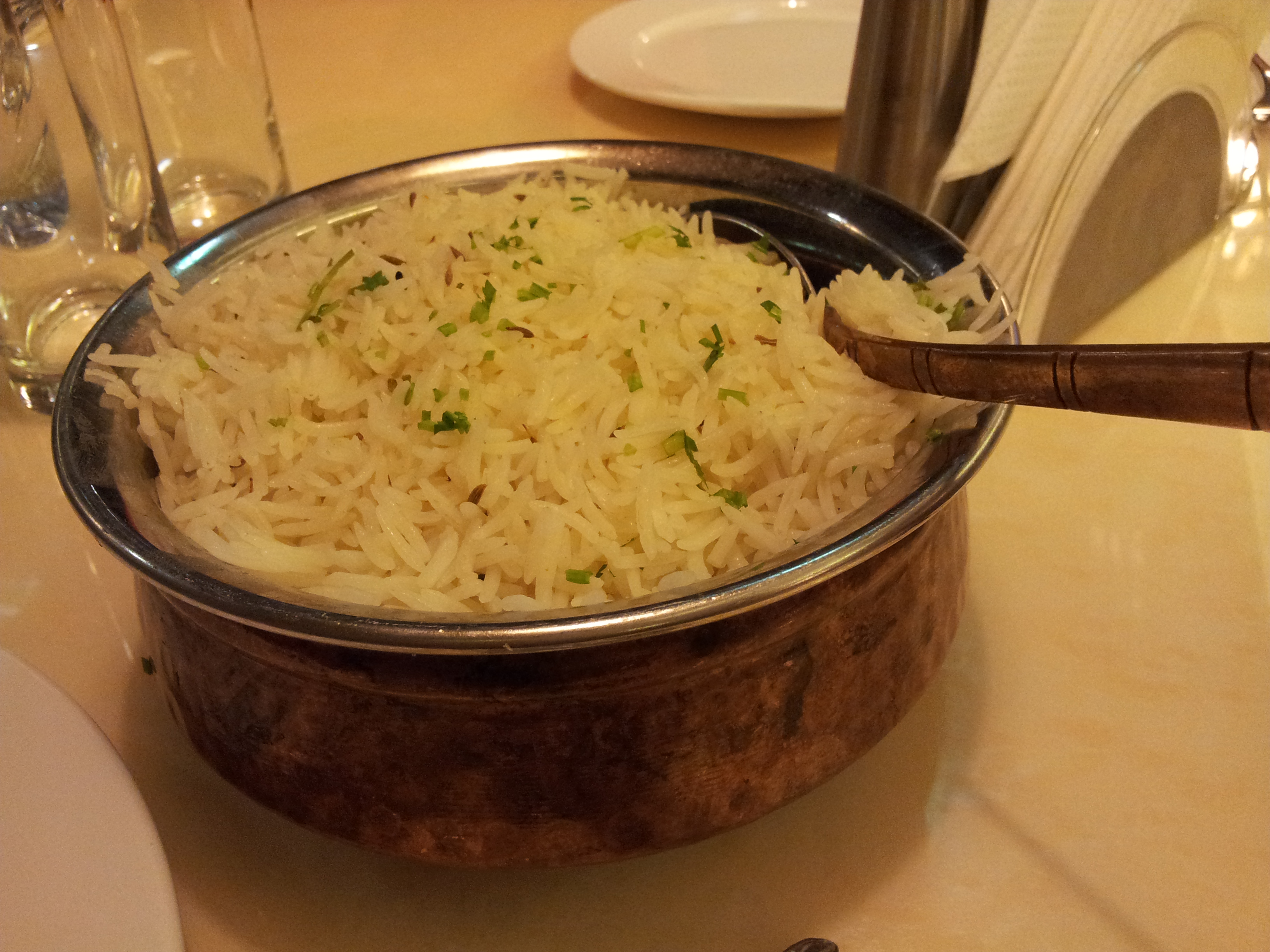The basmati rice was tempered with cumin seeds and garnished with fresh coriander leaves.