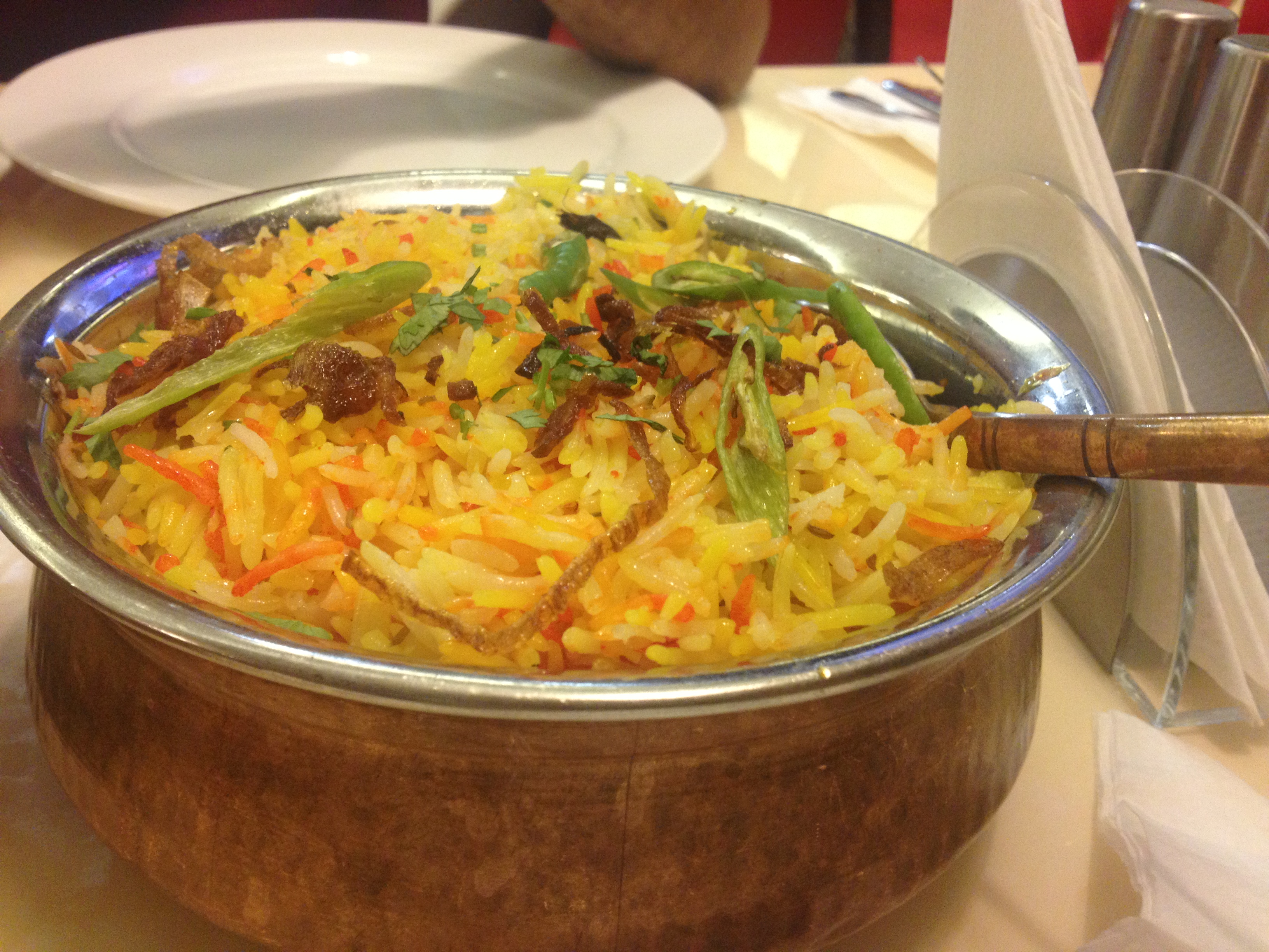 Sahil ordered Prawn Biryani and found it too dry. Upon complaining the waiter acknowledged that the Prawn gravy may have been a last minute addition to the pre-cooked plain biryani. The gravy like Vegetarian / Mutton/ Chicken / Prawn get added as per the customer’s order. Odd!
