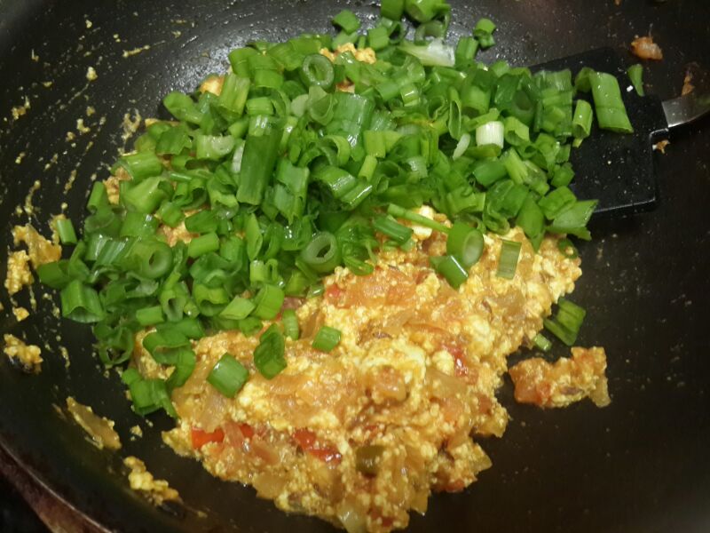 Keep stirring continuously on low heat until the mixture gets some color. Take it off the heat and pour over the yogurt mix.